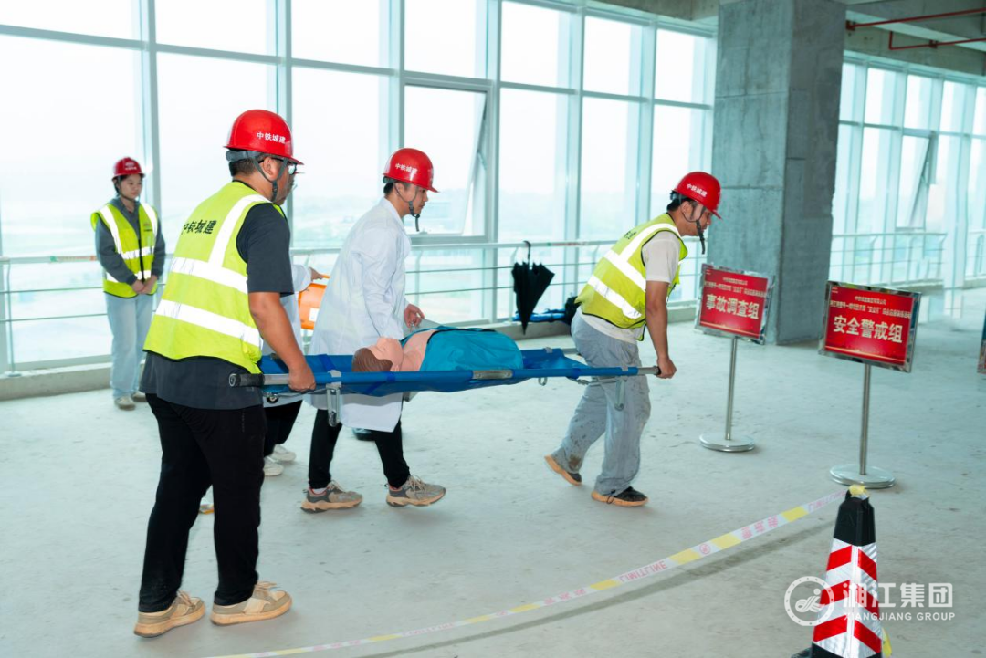 湘江集团党委委员、副总经理兼麓宸投资公司党支部书记、董事长李江,集团安全建管中心总经理黄勇,中铁城建集团有限公司总承包分公司党委书记任远志及麓宸投资全体干部职工共同参与本次演练。湘潭市红十字会安全导师莫博受邀现场指导,为演练提供专业支持。